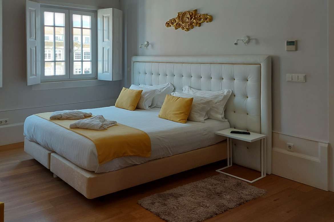 Penthouse Suite has a privileged view of Largo do Toural, our Penthouse Suite is a large room with king-size bed and chaise longue for relaxation. It also has an office area, closet, safe and minibar. All towels are of high quality textiles, raising the standards of refinement, quality and elegance.